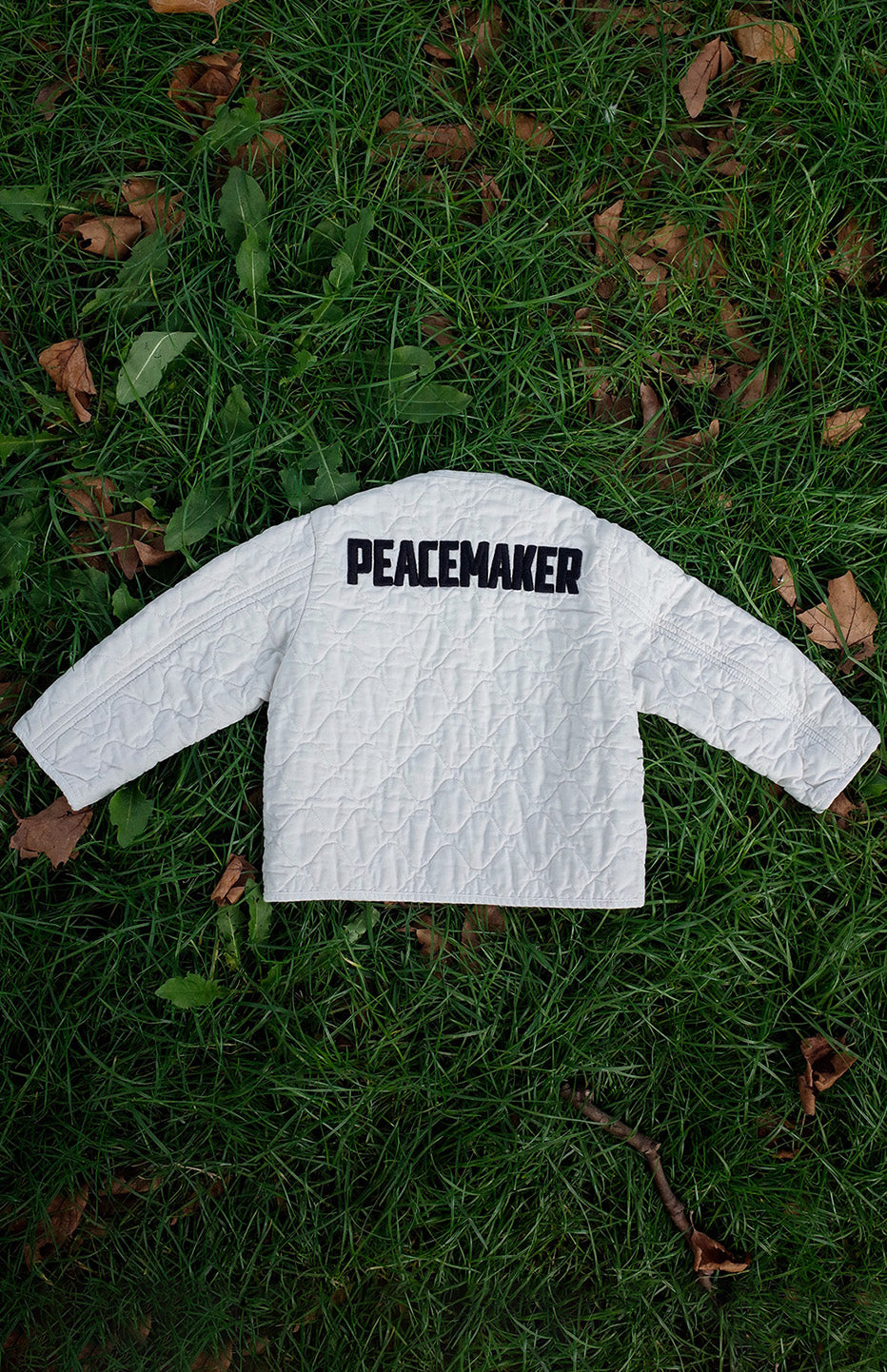 It features OAMC’s embroidered logo at the front, the Peacemaker logo embroidery at the back and horn buttons.
